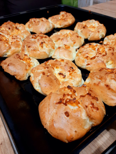 Никогда не думала, что добавил в заварное тесто сыр получится такая вкуснота! Сначала и не поверила своим глазам когда они так увеличились в объёме!)) Очень красивые, вкусные, ароматные! И, самое главное, быстро все приготовили с дочкой! Спасибо автору за рецепт!