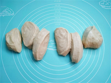 Скатайте тесто в толстую колбаску и разделите его специальным кондитерским шпателем или ножом на 5-6 одинаковых частей.