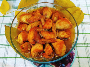 Кроме крыльев я замариновала еще и голени. В маринад чеснок не добавляла, дети не очень любят его запах. Из специй взяла карри, паприку, черный перец из мельнички и немного лимонной цедры. Соевый соус очень хорошо подходит для маринования курицы. Мне он больше всего нравится. Отличный маринад! Мясо мариновалось три часа в холодильнике, потом на пол часа оставила при комнатной температуре и запекла в духовке. Запекала подольше, чтобы появилась румяная корочка. Я очень люблю именно крылья, они получились просто великолепные, очень вкусные. Дети и муж разобрали голени, тоже все довольные) Спасибо за такой замечательный рецепт маринада для курицы! Очень вкусно, мясо мягкое, ароматное, пряное!