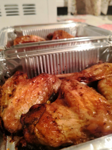 На 3 часа ставила в холодильник мариноваться, ещё немного чеснока-специи добавляла.. Затем в 2 формы ( у меня одноразовые) и на 40 минут в духовку) заметить стоит, что даже моя НеФонтанДуховка справилась с задачей 👍