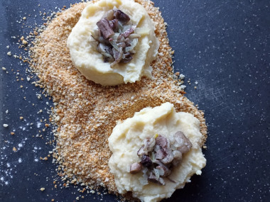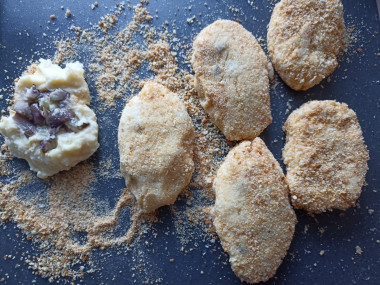 Придайте картофельным зразам форму и обваляйте в панировочных сухарях.