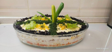 Вкусный салат, один из моих любимых. Я делаю ещё один слой - яблоко тертое. Очень вкусно получается. И я использую майонез своего производства, с покупным не очень нравится.