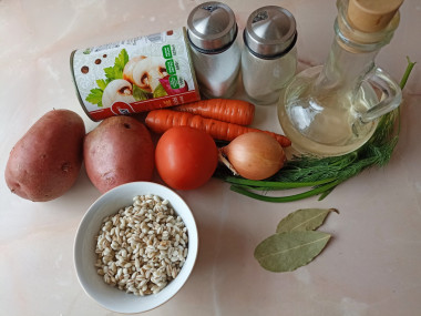 Первым делом подготовить перловку. Её нужно сначала промыть, затем отварить в слегка подсоленной воде до готовности. Варить перловку отдельно следует для того, чтоб бульон в супе в дальнейшем не стал мутным.