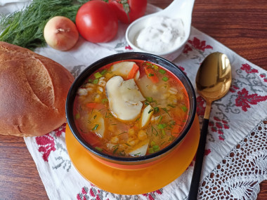 В период Поста такой супчик можно сварить на овощном бульоне, либо на обычной воде. Получится не менее вкусное и насыщенное первое блюдо.