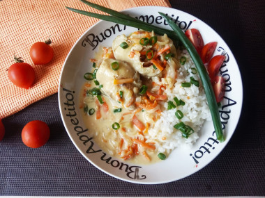 Я сначала рыбку слегка обжарила, а только потом добавила в соус. Да и сметанки добавила побольше. В остальном же придерживалась рецепта. Получилось вкусно и достаточно бюджетно. Спасибо за рецепт!