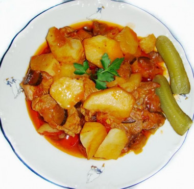 В некоторых мясо предварительно обжаривают перед тушением, добавляя курдючный жир. Овощи кладутся абсолютно любые - и баклажан, и кабачок, и капуста. Капусту обычно кладут целыми листами, накрывая все продукты сверху.