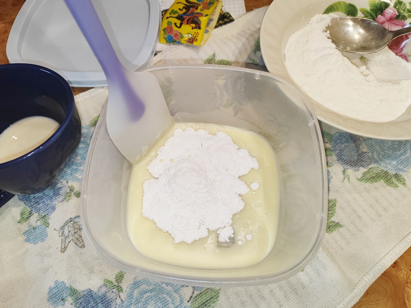 Интересная глазурь по-новому. Молочная глазурь для кулича делается быстро, её удобно наносить (я люблю чтобы текстура была поплотнее). Я замешивала глазурь силиконовой лопаткой в судочке с рифленым дном, так быстро разбиваются комочки.