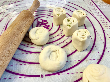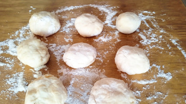 Каждый шарик раскатайте в круглый пласт. При помощи блюдца или тарелки вырежьте ножом круги.