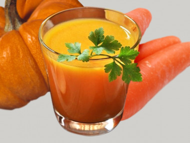Сок получается ароматным и густым, с мякотью. Мякоть в бутылке может оседать на дно, что говорит о его натуральности и об отсутствии в составе искусственных красителей. Поэтому перед употреблением сок взбалтывают. Тыквенно-морковный сок особенно хорош в охлажденном виде.