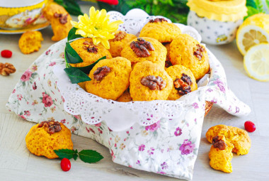 Очень вкусное печенье! Мягкое, воздушное, с деликатным вкусом. Я бы положила меньше сахара и добавила орехи еще и в само тесто.
