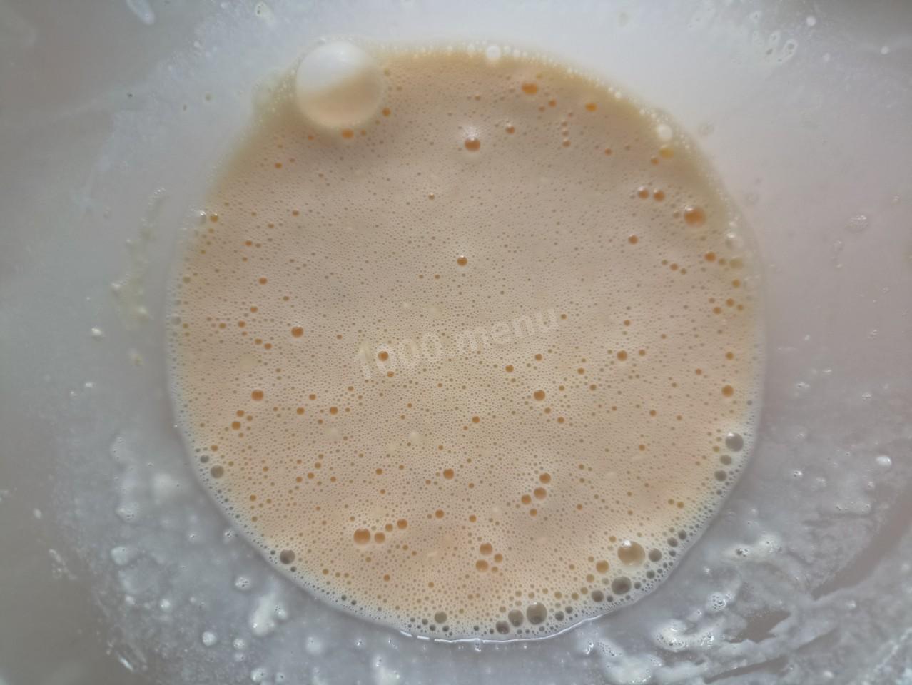 С помощью венчика взбейте массу до однородности. Тесто должно получиться текучее, но не слишком жидкое.