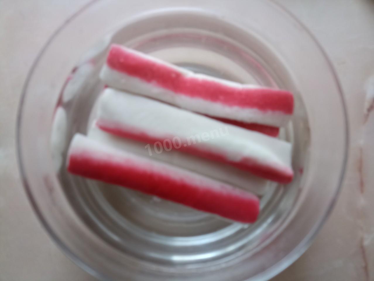 После такой "процедуры" крабовые палочки становятся эластичными и без труда разворачиваются.