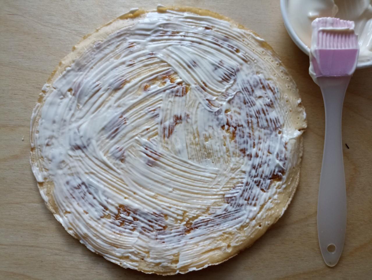 Каждый блинчик слегка смажьте майонезом.