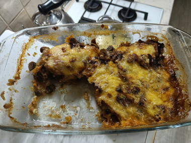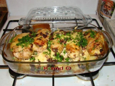Курица с шампиньонами и сыром в духовке - очень вкусное блюдо, улетело с праздничного стола первым). Блюдо понравилось и взрослым и детям, большое спасибо за рецепт!