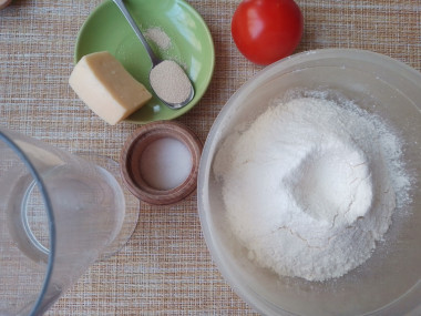 Как сделать пиццу с ветчиной, грибами и сыром? Для начала подготовьте необходимые ингредиенты для основы. В глубокую миску просейте муку. Благодаря этому она насытится кислородом, и готовое тесто получится нежнее. Добавьте соль, сахар, сухие быстродействующие дрожжи и влейте оливковое масло. Если у вас активные или свежие дрожжи, то их надо предварительно развести в теплой воде, чтобы они активировались.