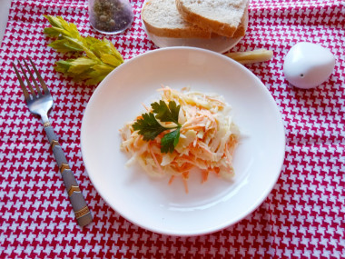Такой вкусный салат получился!!! Делала без сельдерея. Капуста и морковка. Ну и, конечно, заправка. Похож на салатик, который в KFC подают. Автору спасибо за рецепт. Уже делаем такой салат часто. Делаю всегда два вида заправки. Кому что нравится, поострее или простой диетический вариант, все равно вкусно Улыбка