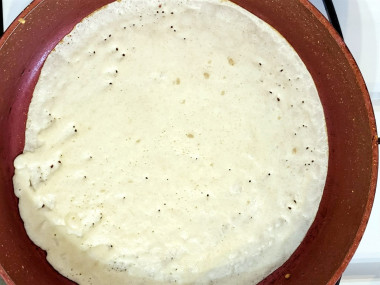 Затем блин переверните лопаткой и жарьте с другой стороны. Время обжаривания второй стороны скорее всего будет меньше.