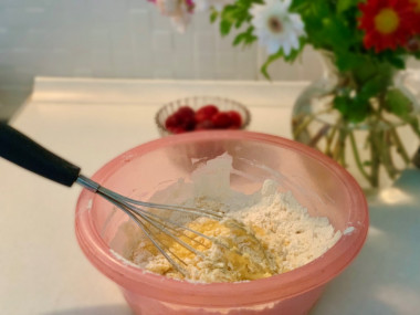 В отдельной чаше соедините яйца с сахаром и немного их взбейте.