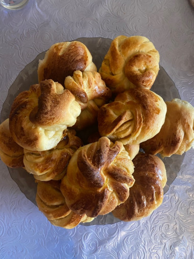 Рецепт очень хороший. Булочки получились отличные. И не только такой формы. Что бы были пышные, нужно просто чуть больше оставить их расстояться.