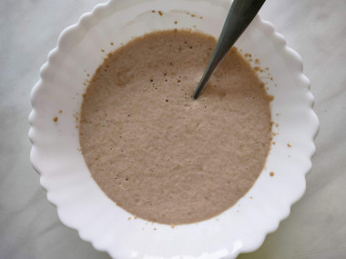 Муку просейте дважды, чтобы она обогатилась кислородом и тесто лучше поднималось. В полученную жидкую смесь постепенно введите муку. Сначала можно смело добавить чуть больше половины и перемешать ложкой. Затем небольшими порциями, каждый раз перемешивая, добавьте остальную муку. Муки может потребоваться чуть меньше или больше. Но главное, не переусердствовать с ее добавлением, чтобы тесто не получилось излишне крутым и тяжелым.