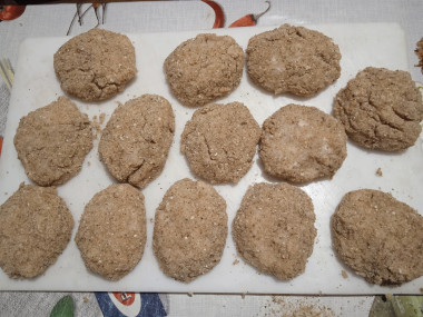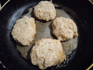 Для жарки котлет разогрейте сковороду до горячего состояния и налейте на неё немного растительного масла. Слепите руками небольшие котлеты и обваляйте их в панировочных сухарях. Выложите котлеты на сковороду и обжаривайте с двух сторон до золотистого цвета на среднем огне.