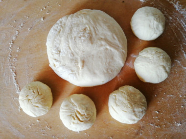 Слегка смажьте руки растительным маслом и вымешивайте тесто вручную в миске или на столе в течение примерно 10 минут. Сначала тесто будет липнуть, но затем оно станет эластичным. Муку добавляйте только при необходимости, «забивать» тесто мукой не нужно. Сформируйте из теста шар, положите его в миску, накройте полотенцем и оставьте на 1 час в теплом месте.
