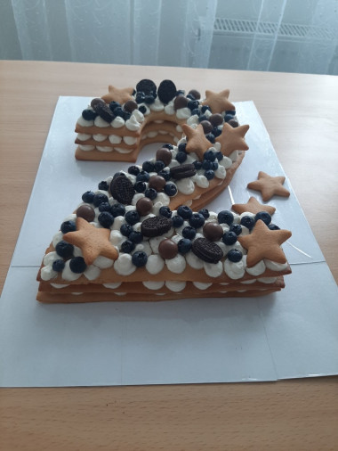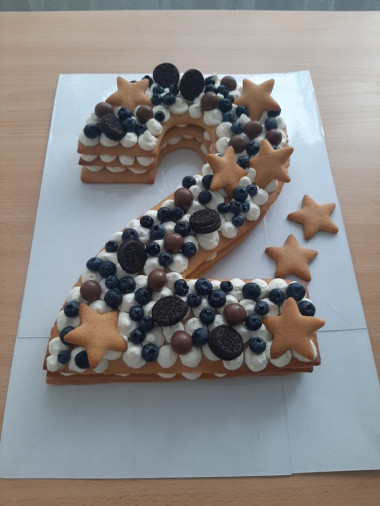 Как сделать торт в виде цифры 2? Для приготовления медовых коржей подготовьте необходимые ингредиенты. Сливочное масло лучше выбирать качественное, без растительных добавок, оно сделает ваш торт полезнее и вкуснее. Для крема понадобятся охлажденные сливки. А творожный сыр лучше заранее достаньте из холодильника, часа за 2, так он лучше вмешается в крем.