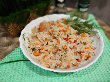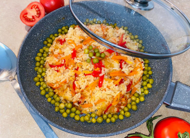 Обычно плов готовлю только с морковью и называю его «плов без мяса», а в этом рецепте и перец и помидоры, и морковь, действительно «овощной плов». От себя добавила говяжий бульонный кубик.