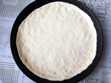 Просеяла муку, добавила в нее щепотку соли, растительное масло, разведенные дрожжи, замесила тесто. Дала ему постоять, сама в это время занялась начинкой. Когда начинка была готова, поделила тесто на две части, одну раскатала под размер большой чугунной сковороды, вторую убрала в морозилку на хранение.