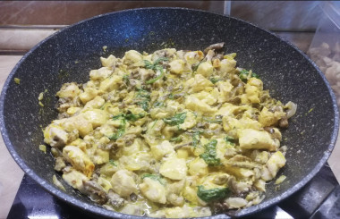Я дополнила этот рецепт шпинатом и заменила шампиньоны - вешенками😊