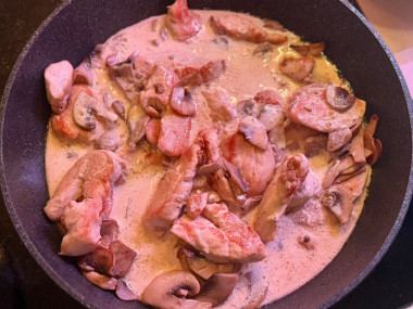 Готовлю курицу с грибами в сливках по похожему рецепту. В следующий раз добавлю сыр.