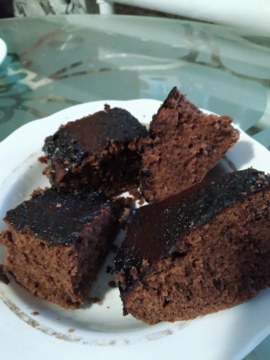 Устанавливаем 180 градусов и готовим 20 минут. Достаём наш кекс. Отставленную половину теста взболтать вилкой и залить верх брауни в форме. И возвращаем её в духовку на 5 минут. Пусть пропитывается.