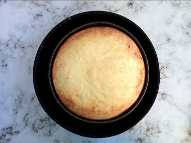 Запекала в разъемной форме диаметром 22 см. Дно застелила пергаментом, а бока смазала сливочным маслом. Пекла 45 минут при 180°С.