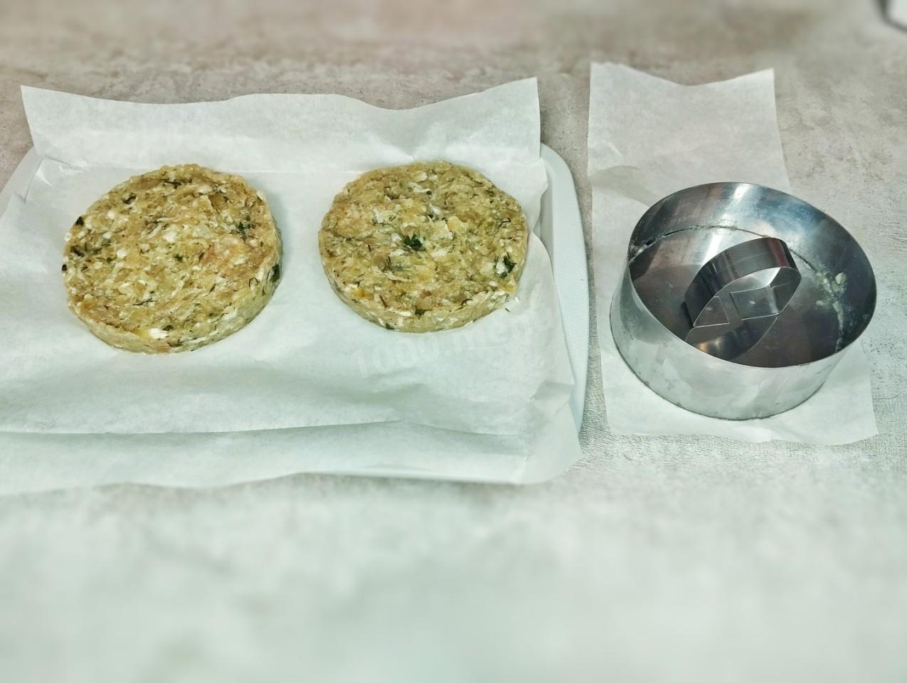 Повторяйте процедуру, формируя круглые котлетки толщиной около 2 сантиметров. Готовые котлеты ненадолго поместите в морозилку, чтобы фарш слегка схватился (полностью замораживать не нужно!).