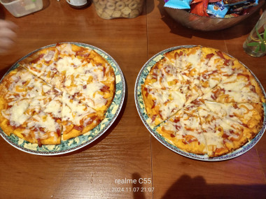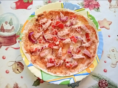 Этот рецепт просто палочка-выручалочка, когда времени нет на выпечку, а хочется чего-то вкусного. Очень быстро и пицца готова, не надо возиться с тестом. Обычно я делаю дрожжевое тесто в хлебопечке, 1,5ч тесто подходит, в будни в рабочий день это нереально. Я воспользовалась вариантом из комментария, делала неоднократно на 2х тортильях, между собой просто посыпала тёртым сыром, очень вкусно, просто не получалось выкладывать фото. Кто не любит пиццу??? Мы её обожаем!