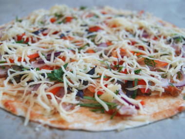 Пицца на лепешке тортилья - это быстрый и вкусный завтрак или перекус на скорую руку. И конечно же начинка может быть абсолютно разной, можно использовать все что есть под рукой или завалялось в холодильнике. Удобно, не правда ли?!