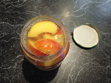 Обожаю персики! Захотелось сохранить этот необычайный летний вкус на зиму. Приготовила консервированные персики на зиму по этому рецепту. Рецепт до невозможности простой. Важно, чтоб плоды персика были плотными, упругими, не порчеными. Вынула косточки, разрезав персики посередине ножом и прокрутив. Порезала персики дольками, как пишет автор. Заполнила банку дольками персиков, залила кипятком и оставила. Слила воду, положила сахарный песок и закипятила. Сироп получился весьма сладкий, что придаст персикам дополнительной сладости. Залила персики кипящим сиропом и закатала. Кстати, такой сироп можно чуть разбавить и выпить компотом. А консервированные персики я никуда не использую, мы их очень любим есть просто так. Персики в сиропе - самая вкусная заготовка! Всё гениальное - просто! Достойный рецепт! Благодарю автора!
