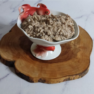Решила приготовить паштет из рыбных консервов: у меня как раз была баночка консервированного тунца. Тунец я размяла вилкой, добавила натёртые на мелкой тёрке яйца, а твердый сыр заменила на плавленный сливочный сыр. Добавила немного лимонного сока и все перемешала! Получилось очень вкусно, нежно и сытно!