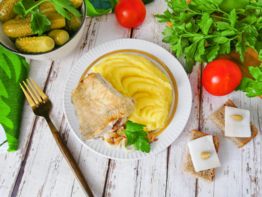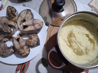 Сделала картофельное пюре с рыбой на ужин. Прекрасное решение и рыбка жарится, и картошка варится) Я взяла другую рыбу, почистила и нарезала стейками. Посыпала солью, перцем и полила лимонным соком. А жарить решила не в муке и не на масле, а хотелось более диетического блюда. Обжарила рыбу на сковороде без масла в пергаменте. Почистила картофель и отварила до готовности. Добавила масло и молоко. Размяла картошку в пюре и вуаля. Одновременно приготовилась рыбка и пюре. Это прекрасный ужин. Просто, быстро и очень вкусно. Рыбка получилась не жирная, сочная и ароматная. Картофельное пюре невероятно нежное и прекрасно сочетается с жареной рыбкой. Замечательный рецепт! Благодарю автора!