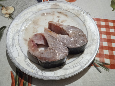 Рыбу помойте, при необходимости нарежьте на небольшие куски, обваляйте в мучной смеси со всех сторон.