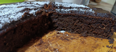 Очень необычный пирог получился! Сверху напоминает обычный шоколадный кекс, а внутри очень похож на брауни - серединка остается влажной. Кабачки не чувствуются вообще!! Если бы меня угостили такой выпечкой, в жизни бы не отгадала секретный ингредиент))