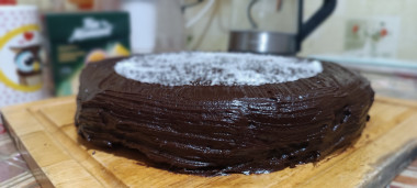 Смешайте ингредиенты для шоколадной глазури, доведите до кипения и полейте пирог горячей глазурью. Приятного аппетита!