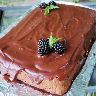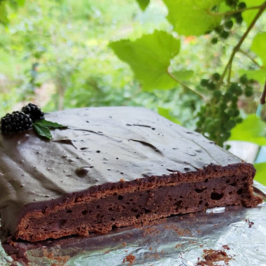 Шоколад кусочками не добавляла, положила чуть больше какао-порошка, я думаю - это не критично. Мне кажется, что главную роль здесь играет классическая шоколадная глазурь, поэтому сварила ее побольше и намазала толстым слоем)) Лично мне не хватило в пироге орехов, я бы их еще добавила обязательно, но это как говорится, на любителя!