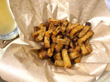 Попробовала приготовить сухарики со специями в духовке, захотелось к пиву чего-то вкусного, а покупные снеки вообще перестали прельщать.