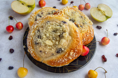 Тесто как пух, начинка очень нежная и вкусная, а песочная крошка хорошо дополнила вкус.