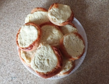 Из предложенного количества ингредиентов у меня получилось восемь крупных ватрушек. Выпекала ватрушки 20 минут: 10 минут на нижнем уровне духовки и 10 минут на самом верхнем.