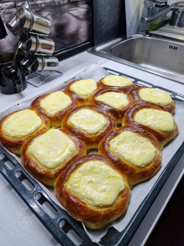 Решила испечь ватрушки с творогом из дрожжевого теста в духовке. Получились они такие же чудесные как те, что пекла бабушка в моё детство. Ароматные, пышные, мягкие. Дети уплели все за один вечер. Просто супер!