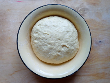 Накройте миску полотенцем и оставьте в теплом месте на 50 минут для подъема. За это время оно вырастет в объеме в два раза.