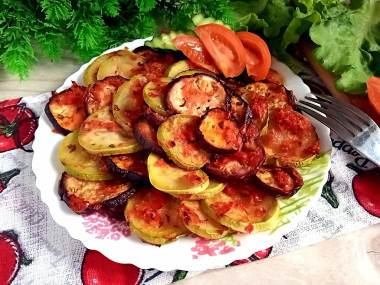 Лёгкое и в то же время невероятно вкусное блюдо! Бесподобно! Баклажаны и кабачки, запечённые в духовке - это прекрасный вариант гарнира к курице, мясу или шашлыку. Запечённые овощи отлично сочетаются с отварным картофелем или рисом. Их можно подать как самостоятельное блюдо или в виде бутербродов с хлебом.