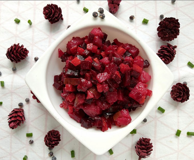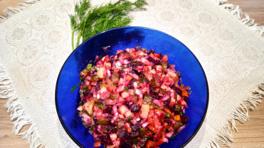 Винегрет получился вкусным и ароматным, несмотря на отсутствие квашеной капусты. Обычно я готовлю с ней, и почти всегда без зеленого горошка. Иногда добавляю яблоко, идеально, если это будет Антоновка. Вариант винегрета, предложенный в этом рецепте, очень похож на тот винегрет из советского прошлого, что подавали в каждой столовой.